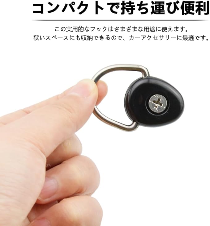 【取り付け簡単】本商品のユーティリティフックは、M6ネジが付属しておりますので、プラスドライバーで簡単に取り付け可能です。様々な車種にフィットし、初心者でも手軽にお使いいただけます。車のフックとして使い勝手抜群です。