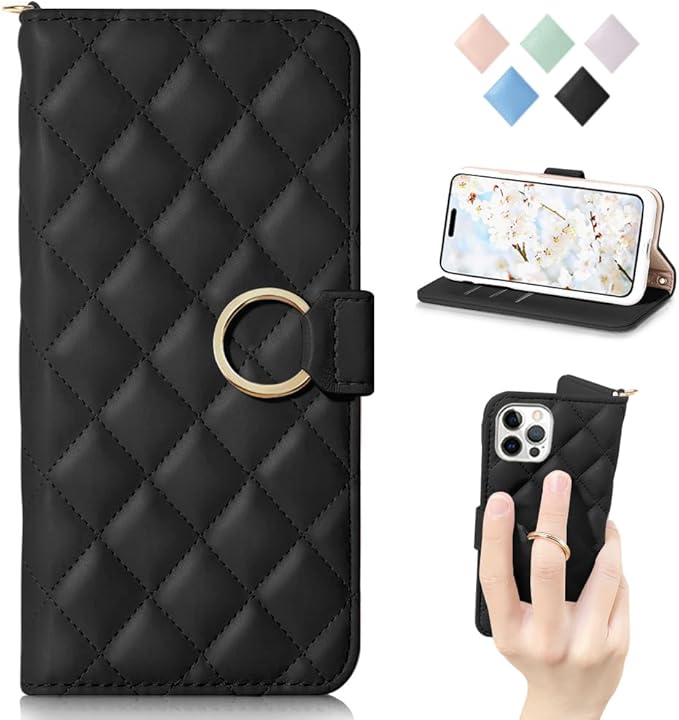 MAGICASE For iPhone 14 pro ケース 手帳型 人気 リング付き可愛い iPhone14 pro 手帳型ケース iPhone 14 プロ ケース 手帳型 シンプル アイフォン 14 pro ケース 女性 カード収納 横置き機能 あいほん 14 pro ケース 財布型 レディース かわいいの贈り物 男女兼用 落ち着いた色(iPhone14pro, 6.1インチ),ブラック