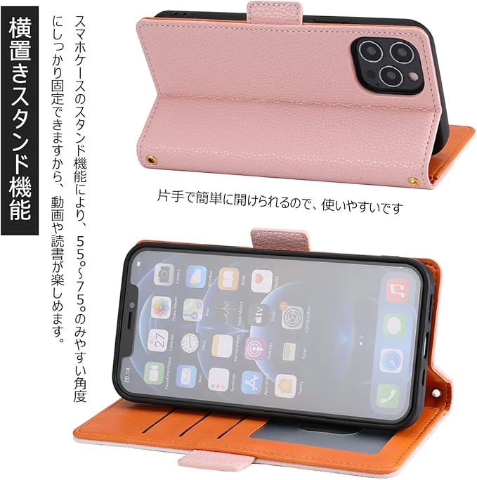 Handodo スマホケース アイホン13 Proケース 手帳型 耐衝撃 高级PUレザー カード収納 横置きスタンド ストラップ付き (iPhone 13 Pro,pink)