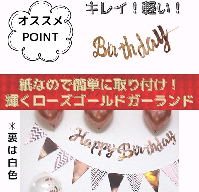 La Kissa 誕生日 飾り付け セット バルーン HAPPY BIRTHDAY 選べるカラー 飾り 風船 男の子 女の子 (誕生日, ローズゴールド)