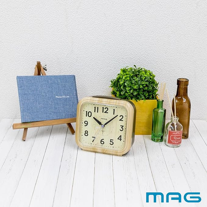 MAG(マグ) 目覚まし時計 置き時計 おしゃれ インテリア アナログ 静音 連続秒針 電子音 アラーム スヌーズ ライト ナチュラル 木目 グレイン T-777A N-Z ノア精密