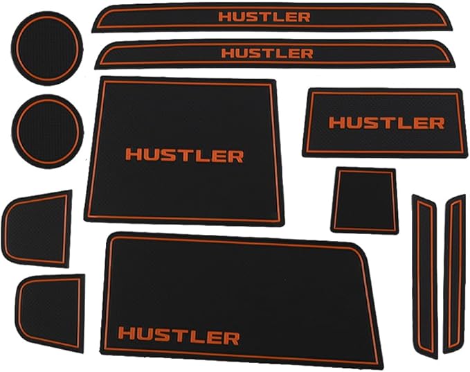 SAWAKAKI スズキ ハスラー MR52S MR92S 専用 インテリアラバーマット ドアポケットマット ラバーマット ロゴ入り 滑り止め 騒音防止 ドレスアップ 内装パーツ 18枚入り(オレンジ)
