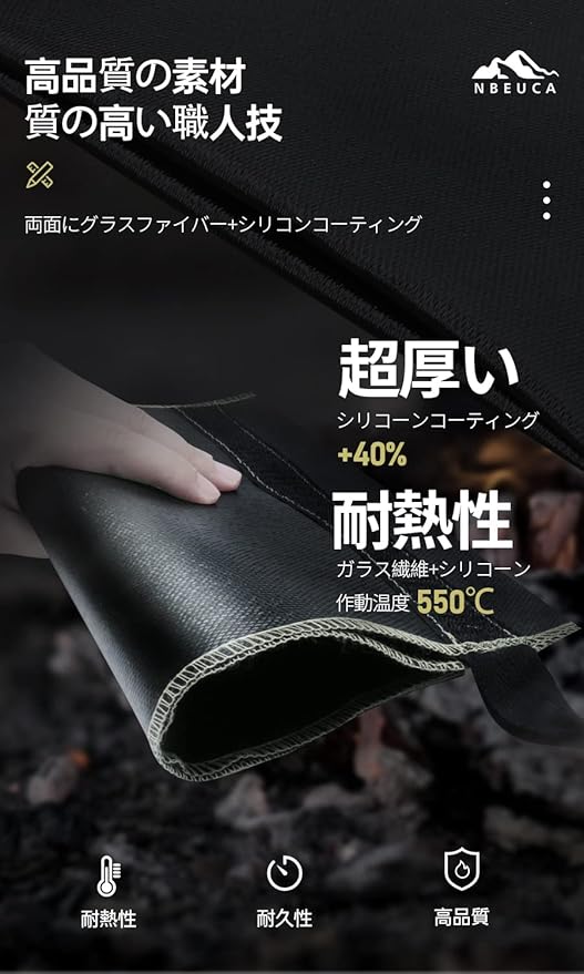 NBEUCA 火消し袋 炭入れ 35*30cm 炭処理袋 キャンプ 【チクチクしない】火消しふくろ ポータブル 炭袋 大容量 耐熱性 難燃性 防水 耐火 簡単収納 コンパクト ガラス繊維袋