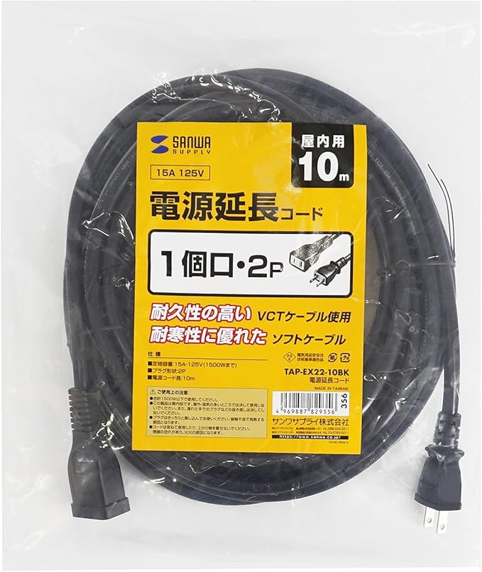 電源タップや電動工具などの機器用電源延長に便利です。