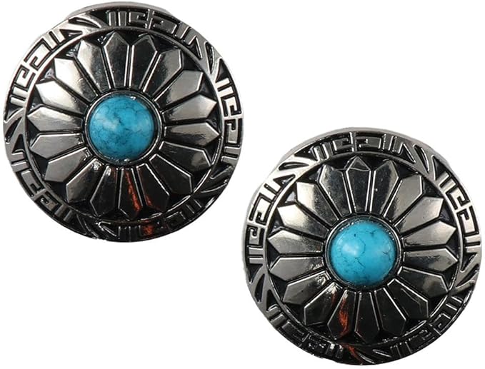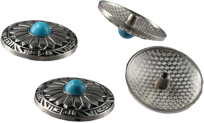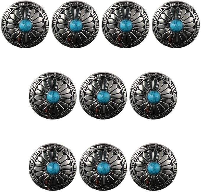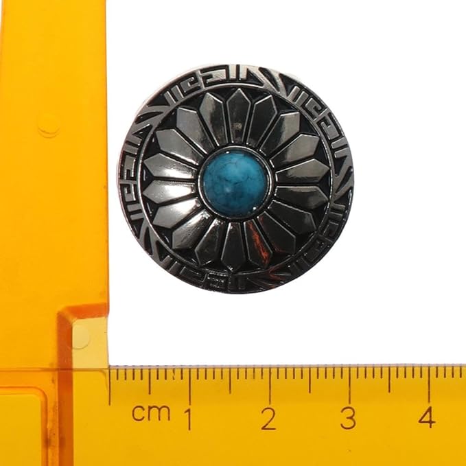 10個 30mm ターコイズ ラウンドコンチョ シルバーメタルスクリューバックボタン メタルサンフラワーボタン ヴィンテージブルーバーコイズボタン DIYウォレット、バッグ、ベルト、サドル、帽子、洋服用
