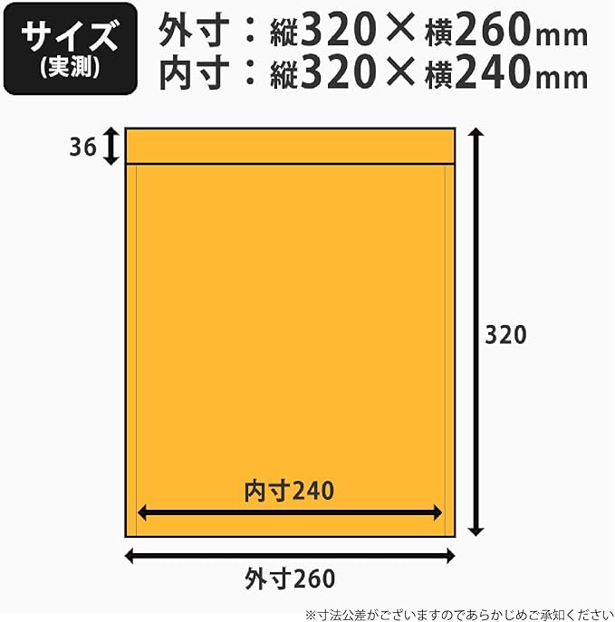 【サイズ】外寸:320 260mm 内寸:320 240mm 折り返し部分:36mm