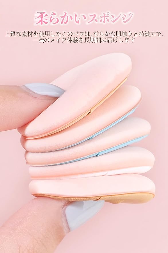 【超柔らかで高弾性のスポンジ素材で肌に優しい】高品質なスポンジを使用し、肌触りが非常に柔らかで、きめ細かい仕上がりを実現。弾力性に優れているため、ファンデーションを均一に伸ばせ、粉ムラや毛穴への詰まりを防ぎます。メイクがより精緻で自然な仕上がりに。