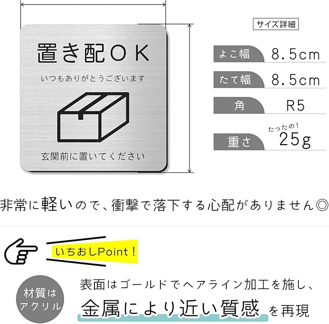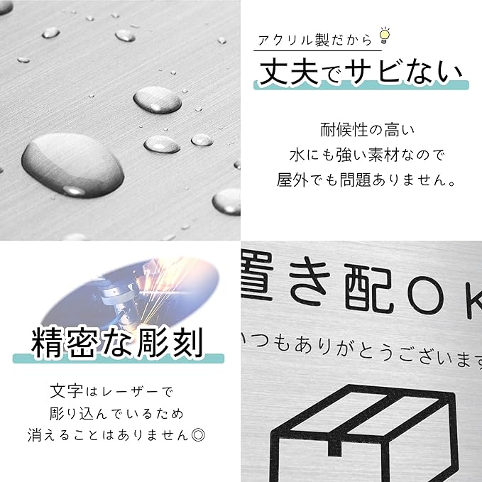 かたちラボ 置き配OK 玄関前に置いてください サインプレート 日本製 シルバー ステンレス調 屋外OK 銀 シール式