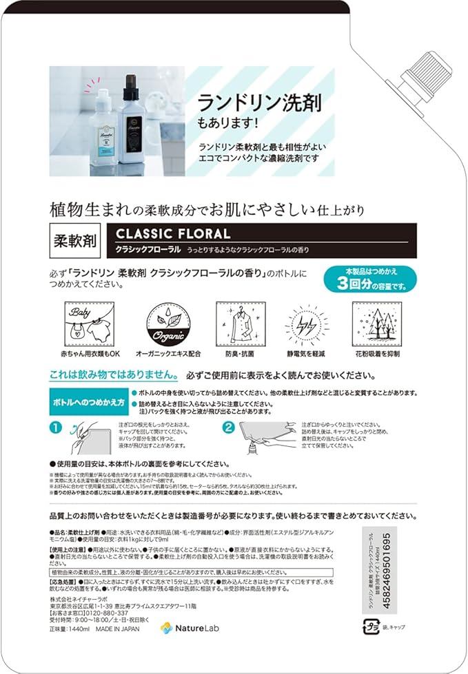 Laundrin ランドリン 柔軟剤 特大容量 クラシックフローラル 詰め替え 3倍サイズ 1440ml