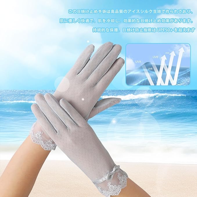 [Umeloeo] レディース 手袋 uvカット レース 薄手 おしゃれ 花柄 UV手袋 グローブ 日焼け止め 滑り止め メッシュ素材 通気 紫外線対策 スマホ対応 通勤 通学 自転車 結婚式 運転手袋 春夏用