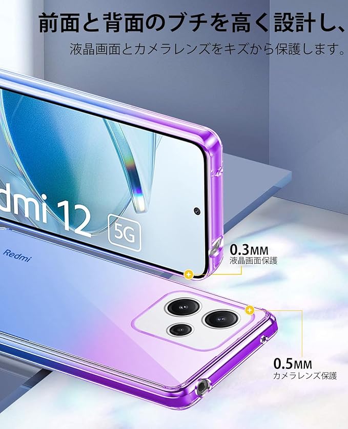 Redmi 12 5G ケース クリア 薄型 TPU 耐衝撃 グラデーション色 ケース 指紋防止 擦り傷防止 軽量 人気 パープルブルー
