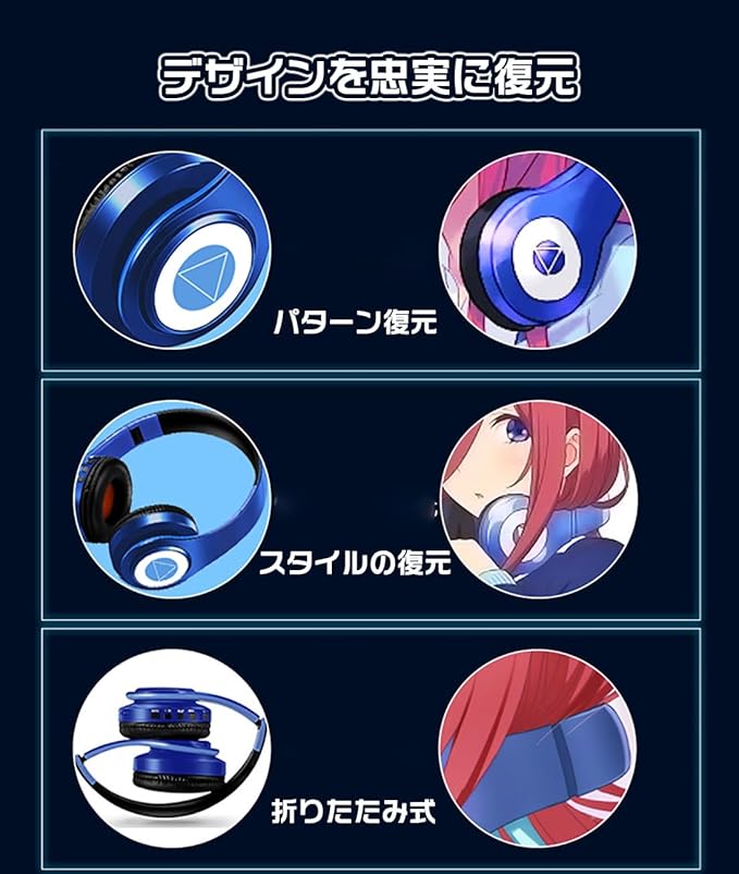 Topsky 中野三玖(Nakano Miku) コスプレ ヘッドフォン Bluetooth 5.0 Bluetoothヘッドホン ワイヤレス マイク内蔵 中野三玖 折りたたみ式 イヤホン アニメ風 ケーブル着脱式 コスプレ 音楽 クリスマス/ハロウィン/イベント/大人/学生/プレゼント 日本語取扱説明書付き
