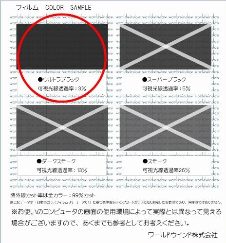 フィルムカラー=可視光線透過率 : ウルトラブラック=3% (ウルトラブラック=3% / スーパーブラック=5% / ダークスモーク=13% / スモーク=26% の内)