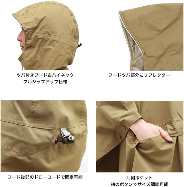 袖のボタンでサイズ調節可能/収納袋付き