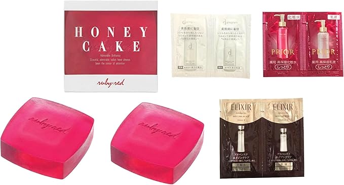 資生堂 ホネケーキ ルビーレッド 3個 & サンプルプレゼント 洗いあがり さっぱり 透明 洗顔 石けん ボディ石けん 顔 体 全肌 懐かしい 昭和 レトロ ロングセラー International shipping available