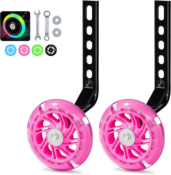 Gemean子供用のトレーニングホイール 自転車補助輪 厚みのあるホイール、ブラケット、ガスケットを備えた素敵なカラフルなトレーニングホイール、12/14/16/18/20インチの男の子と女の子の自転車用のより安定した取り付けキット