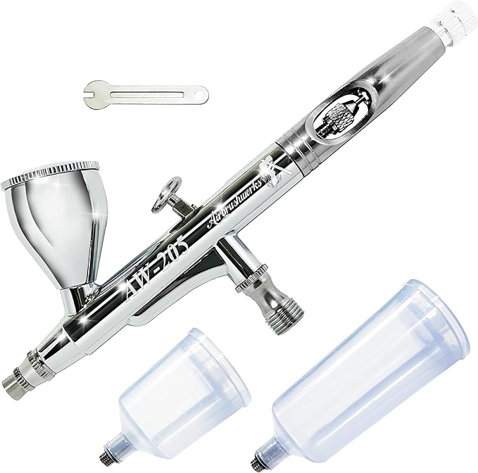 【基本スペック】型式:AW-205、操作:ダブルアクション、ノズル口径:0.5mm、付替式カップ容量:9cc,20cc,40cc