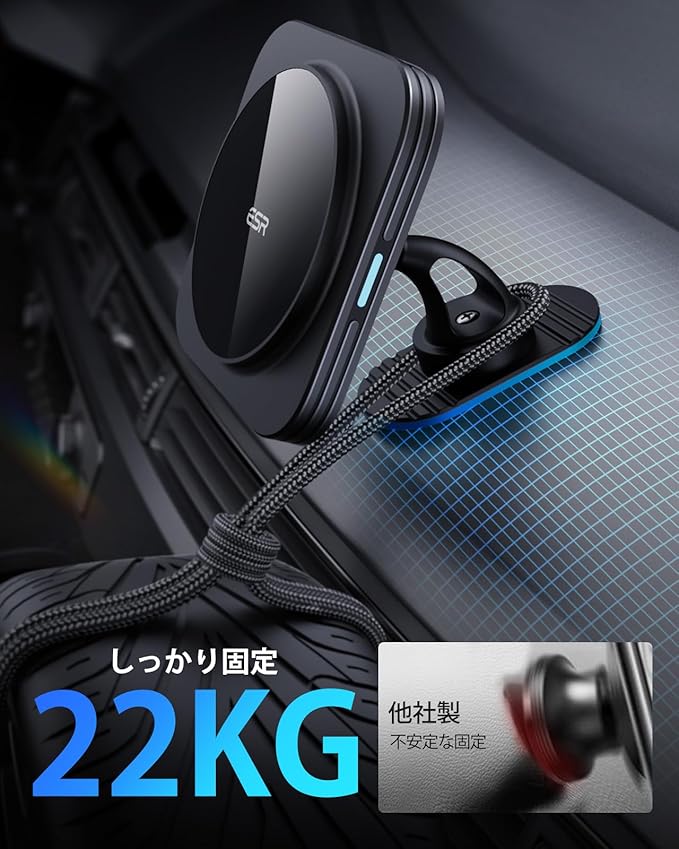 【しっかり固定するマグネットロック】保持力1,600gの強力なマグネットと滑り止めのシリコンリングが、でこぼこ道での運転でもスマホをしっかりと固定します。悪路では、公式のMagSafeケースまたはESRマグネットケースをお勧めします。