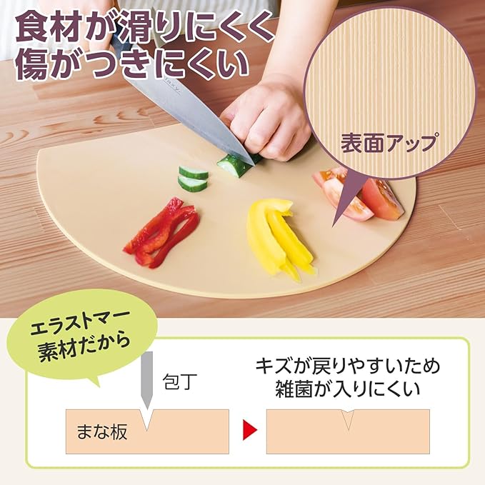 エラストマー素材で食材が滑りにくくキズが付きにくい!