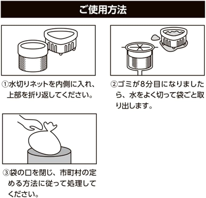 ●三角コーナー・排水口兼用のストッキング水切り袋です。