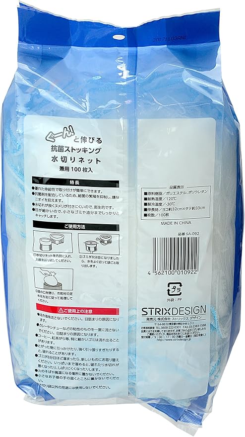 [ストリックスデザイン] 水切りネット ぐーん! と伸びて取り付け簡単 100枚 約32 33cm ストッキング 深型 三角コーナー 兼用 抗菌 排水口 排水溝 ネット 大容量 SA-092