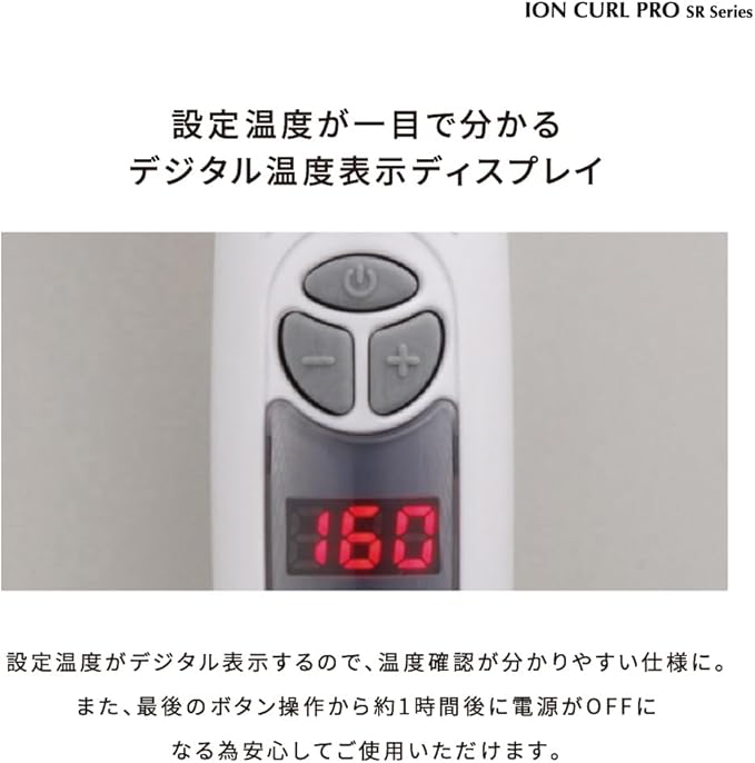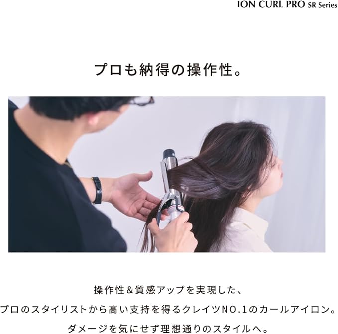 クレイツ人気No1 プロ愛用のカールアイロン 髪にやさしくフィットする「クレイツイオン シリコンラバー」を搭載し、適度なテンションをかけることができ、 誰でも簡単に通夜のある弾むようなカールを作れます。 操作性&質感アップを実現したプロのスタイリストから高い支持を得るカールアイロン。 ダメージを気にせず、ツヤのある弾むような美しいカールを実現します。 滑りがが良く、熱伝導に優れた「クレイツイオン チタニウム」加工を採用し髪への負担を抑えながら、思い通りの カールを実現します。 スピーディーに立ち上がる、熱効率の高いヒーターを2枚搭載して温度の上昇が早く、スタイリング中の温度の落ち込みも 最小限に抑えるので、快適にスタイリングできます。 髪質に合わせて120℃~210℃まで10℃毎の10段階温度調節が可能です。