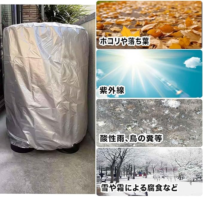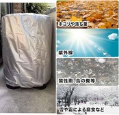 【雨・塵・紫外線遮断】 3層構造で酸性雨・砂埃・日焼けからタイヤを保護。シルバーコーティングが金属ホイールの腐食を防ぎ、UVカット率90%でゴム劣化を抑制。屋外保管に最適。