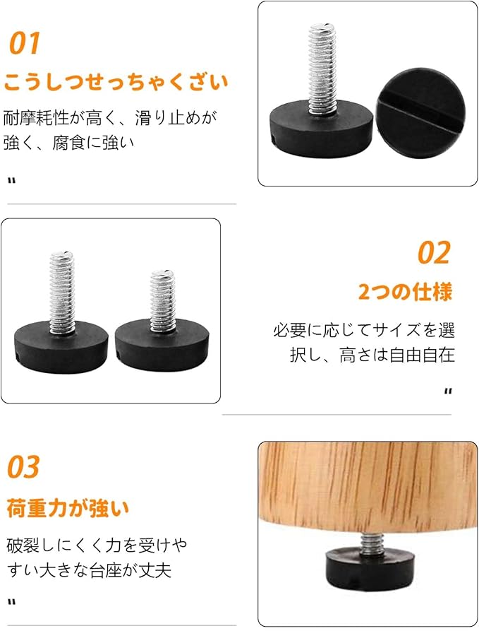 【使いやすい】アジャスターネジ付は絶妙なネジ山、均等な歯の間隔、柔軟で取り付けが簡単です。 ネジを使用して、必要な位置に足を固定するだけです。