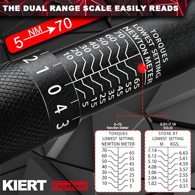 KIERT トルクレンチ プレセット型 差込角 9.5mm (3/8インチ) 範囲 5~70 Nm 車用 バイク用