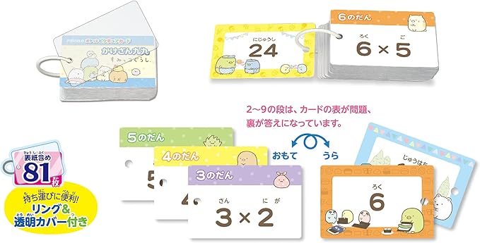 キャラクターで楽しくかけ算九九を覚えることができるカードです。