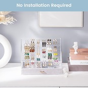 容量:4段ラックが最大36組のイヤリング・ピアスを収納できます;底部の引き出しがあり、指輪や時計などの保管も可能です。