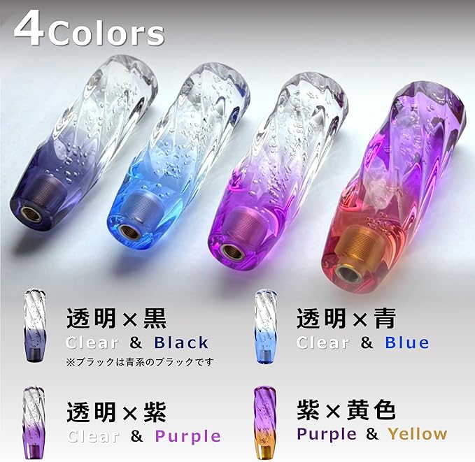 tonra クリスタル シフトノブ shift knob 汎用 アダプター M8 M10 M12 45x150mm 280g MT AT 車 ツイスト 透明x黒