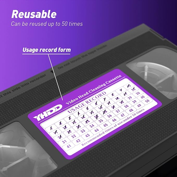 YHDD VCR ヘッドクリーナーテープ VHS/VCR ビデオプレーヤー用 ドライタイプ 再利用可能 50回