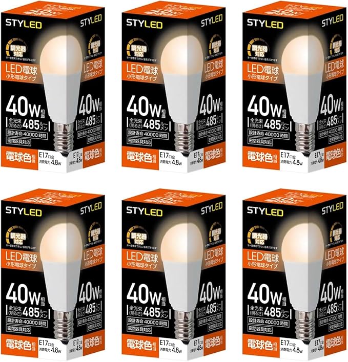 スタイルド LED電球 6個セット E17 電球色 40W形相当 調光器対応 ミニクリプトン形 広配光タイプ 密閉器具対応 HA4D17L6