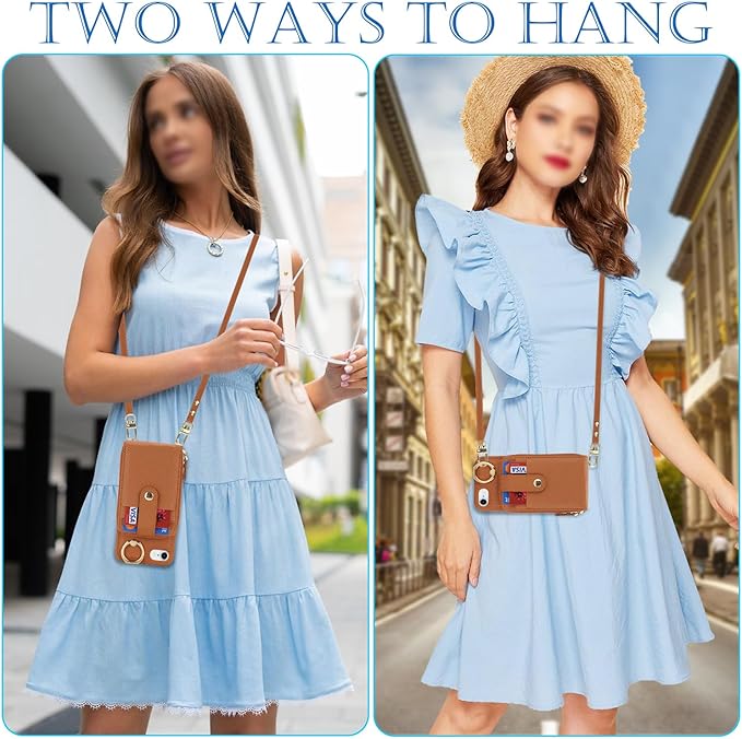 【長ストラップ付き】:携帯ケースに長さを調節できるロングストラップが付属しており、取り付け方によって首または肩に掛けて使用できます、両手が自由に動く。両端の金具は回転するパーツを使用しているので、絡みにくく快適に使えます。携帯が落ちる心配はありません。
