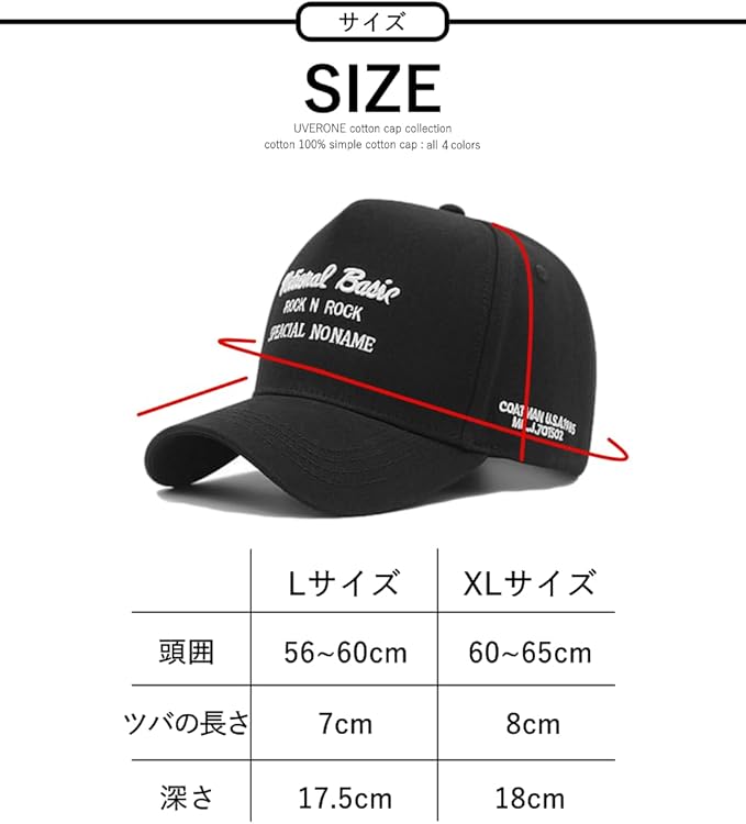 [UVERONE] キャップ メンズ 大きいサイズ 帽子 深め 男女兼用 日よけ ツバ長 L XL 56~65cm
