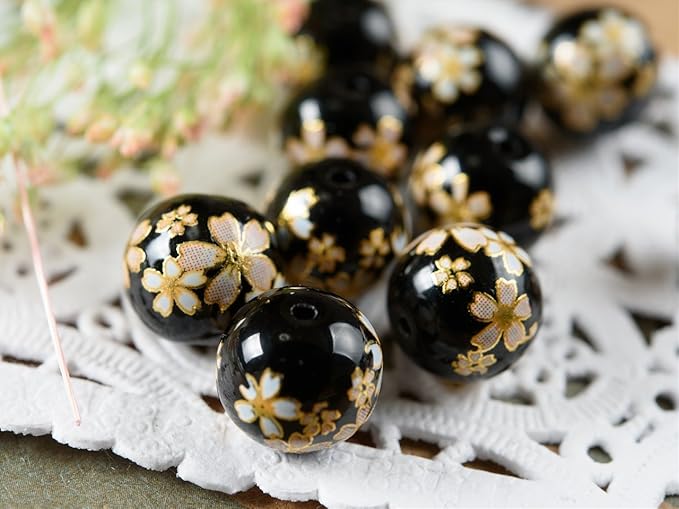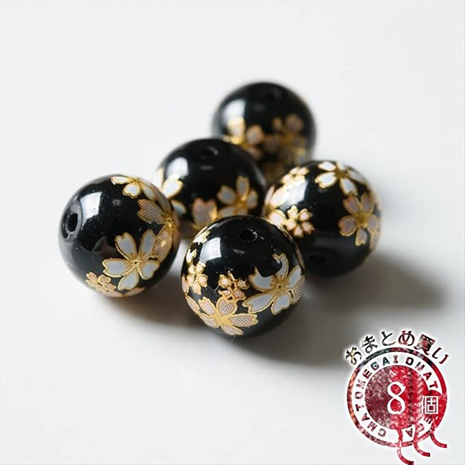 【内容詳細】ビーズパーツ 桜ビーズ 不透明 10mm ブラック 8個 8ヶ 約1cm ビーズ 桜模様入り 穴有り カラフルビーズ ガラスチャーム ガラスパーツ ガラスビーズ アクセサリー アクセサリーパーツ パーツ