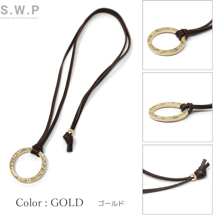 【S.W.P】 メンズ リング レザー ロング ネックレス シンプル メガネホルダー ゴールド arne-002gd
