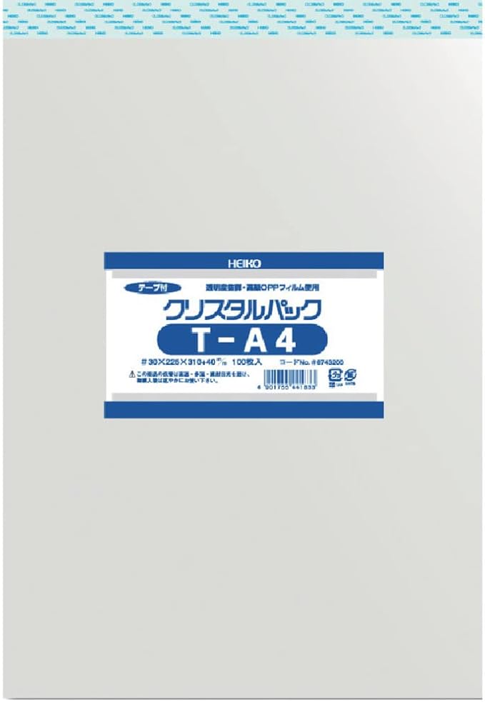 商品名:ヘイコー 透明 OPP袋 クリスタルパック テープ付 A4 100枚 T-A4