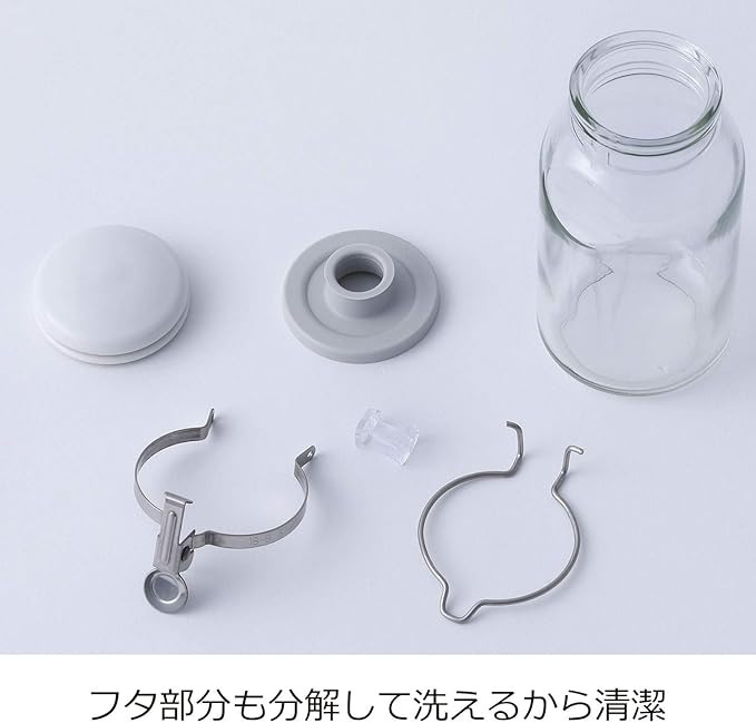 材質:本体/ソーダライムガラス、フタ/PP、中栓・パッキン/シリコンゴム、金具/18-8ステンレス