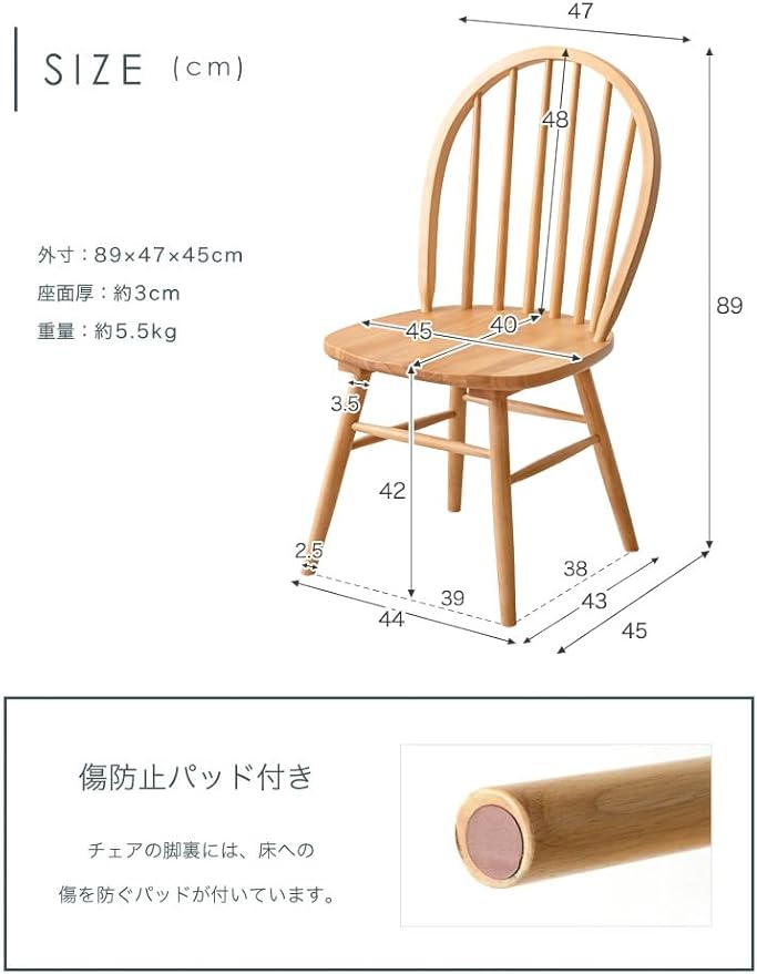 【サイズ】外寸:幅47 奥行き44 高さ89cm(座面高:42cm)