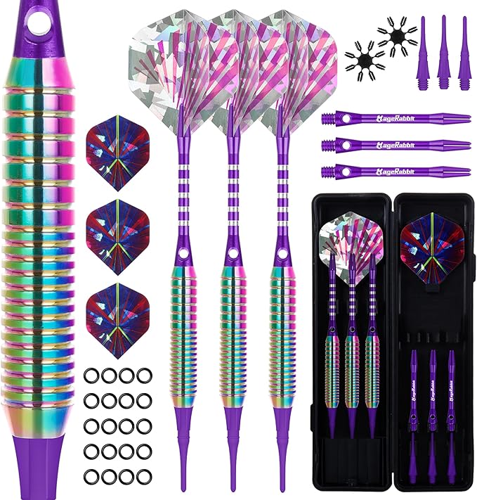 MageRabbitソフトチップダーツセット、3本のアルミシャフト、プロフェッショナルダーツ、3枚の予備ダーツフライト、3本の交換用プラスチックシャフト付き、銅素材のダーツ 16g 電子ダーツボード用, ダーツ 矢,ダーツ 矢 初心者