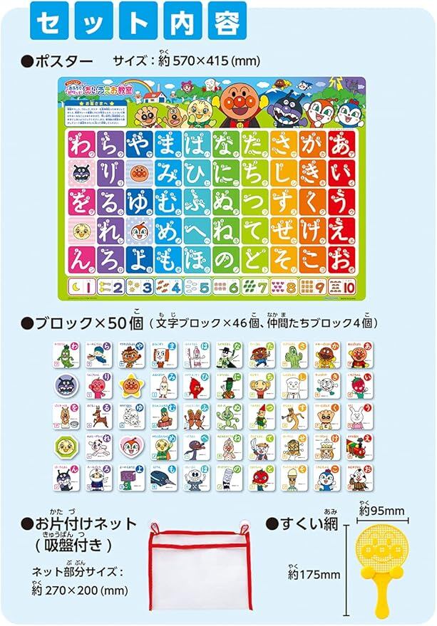 ポスター 1、お片付けネット(吸盤付き) 1、ブロック 50、すくい網 1