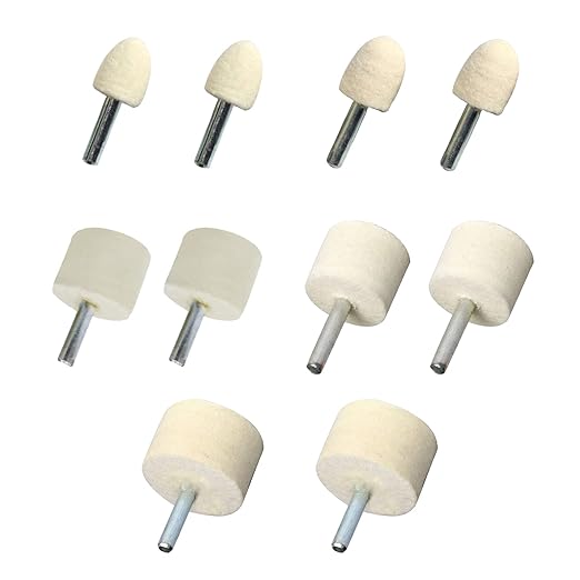 DFsucces フェルトバフ 10ピースセット 6mm軸 軸付フェルト 羊毛研削ヘッド 精密フェルト 電動ドリル用 鏡面研磨用 金属磨き用 仕上げ