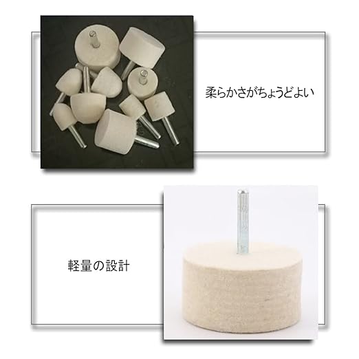 【材質】ウール(研磨ヘッド)+金属(シャフト)。高品質羊毛を圧縮し、高密度で耐久性を高めた。