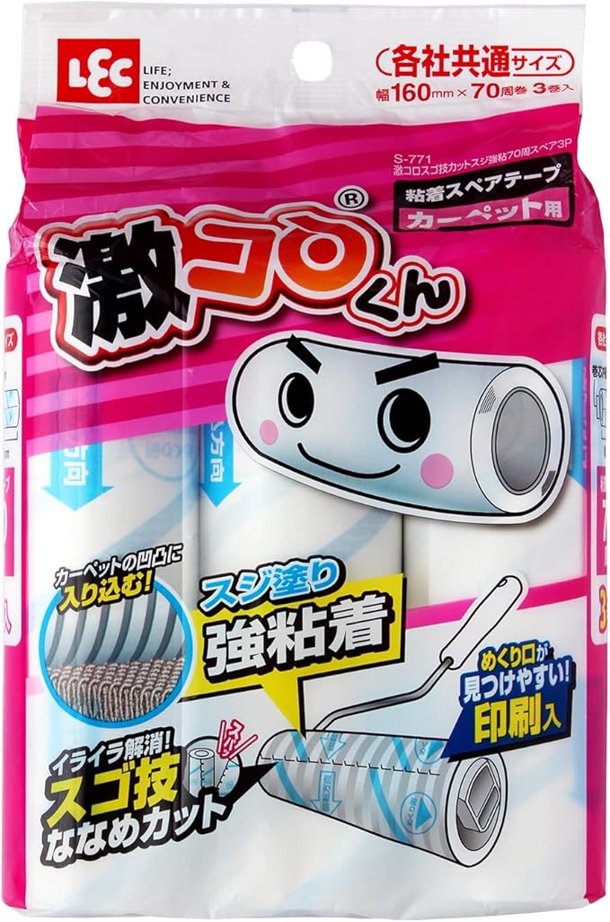 レック 激コロ スゴ技カット スジ塗 強粘着 70周 スペア 3個入 ( カーペットクリーナー )