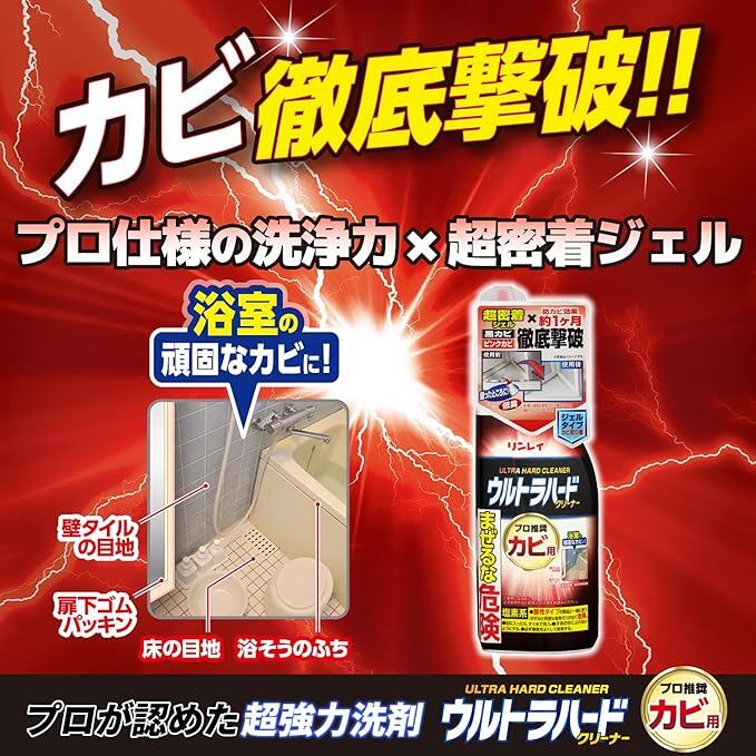 ●「落ちない汚れの最終兵器」でお馴染みのウルトラハードクリーナーシリーズ。●タテ面でも垂れにくい超密着ジェルにより有効成分が効果的に作用することで、今までは諦めていたカビ汚れを徹底撃破。●特殊なヘッドノズルを採用したことで狭小部でも狙った所に塗布可能。●塩素臭も少なく、まさにカビクリーナーの決定版