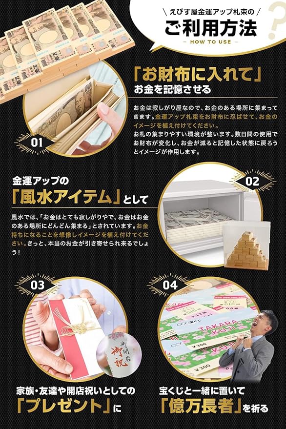 ※上記写真は、見本のため上に本物の1万円札を挟んでいます。 ご使用時には、ご自分で本物の1万円札を入れてください。