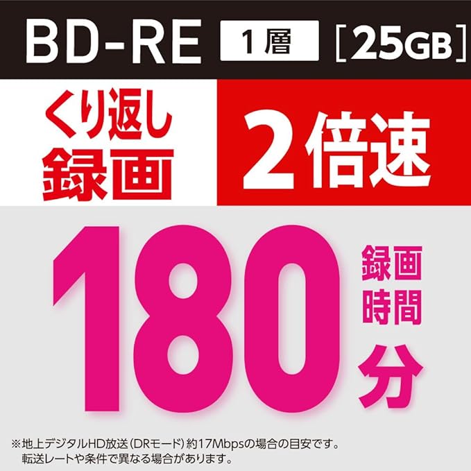 くりかえし録画用ブルーレイディスクBD-RE/1-2倍速記録対応/1層25GB/インクジェットプリンタ対応/ホワイト・ディスク