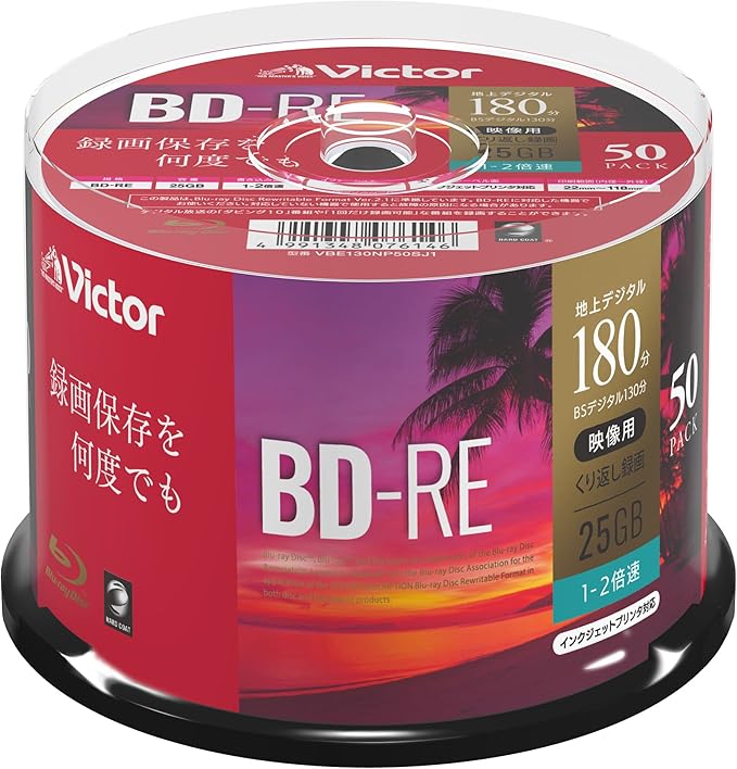 ビクター Victor くり返し録画用 BD-RE VBE130NP50SJ1 (片面1層/1-2倍速/50枚) ホワイト